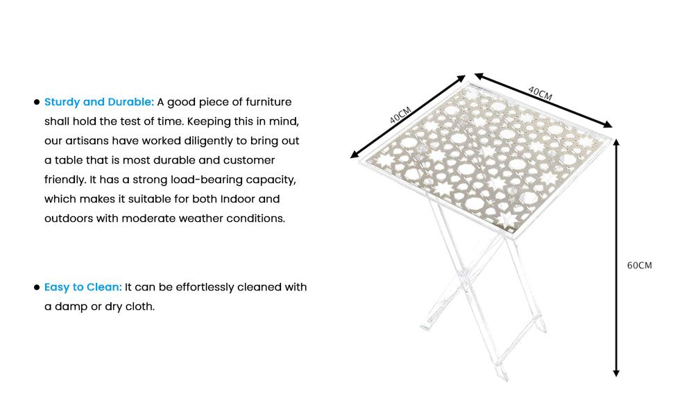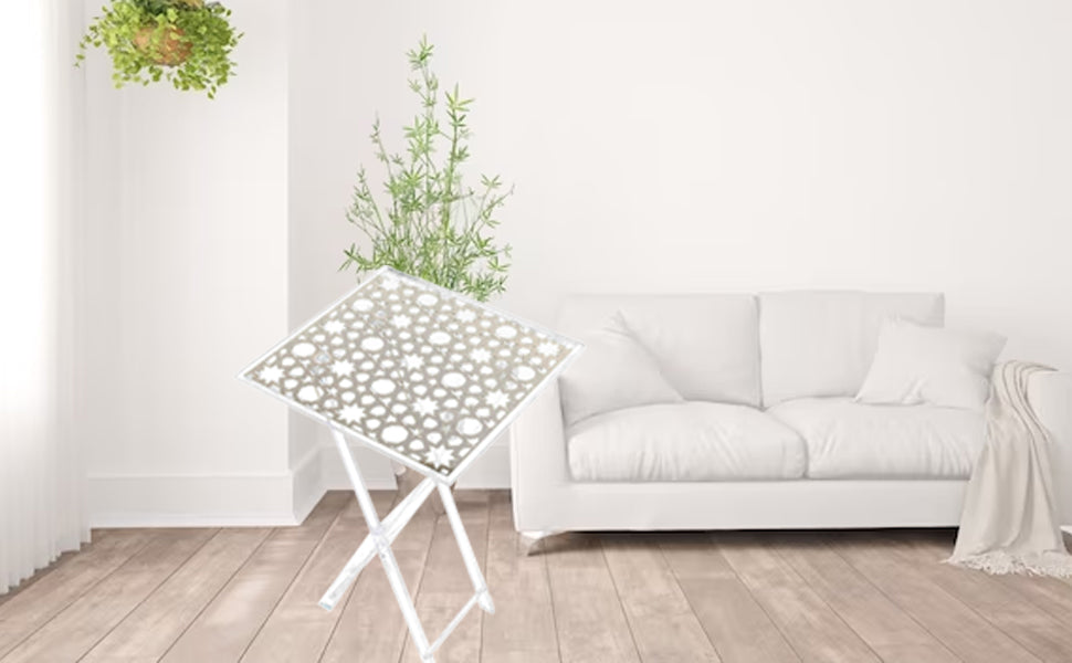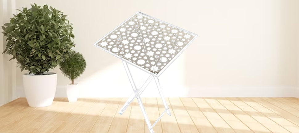 طاولة أكريليك مربعة قابلة للطي باللون الفضي
